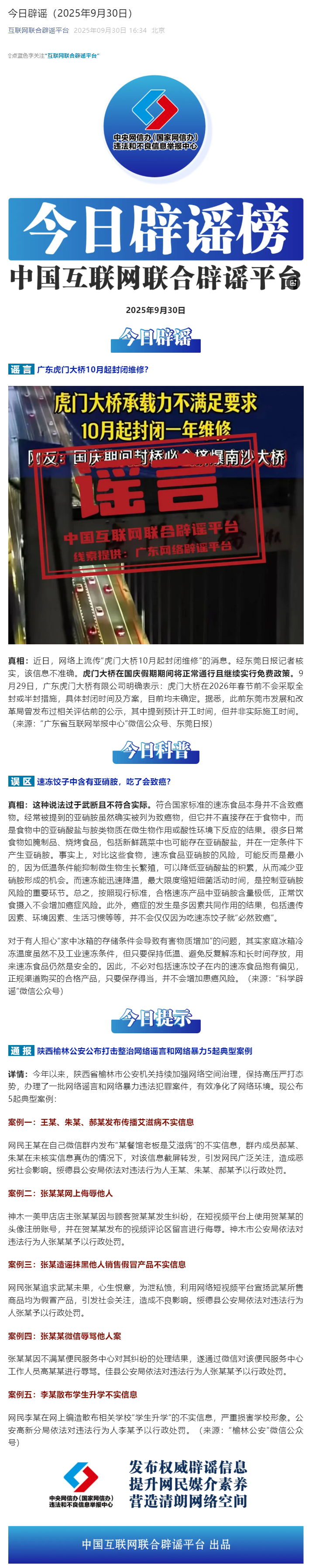 今日辟谣(2025年9月30日)
