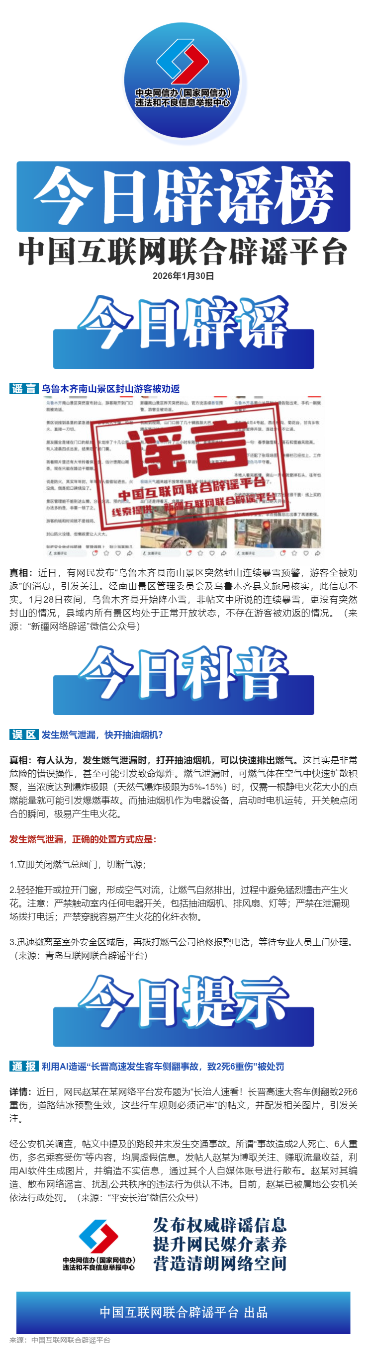 造谣“长晋高速侧翻事故”者被处罚——今日辟谣(2026年1月30日)