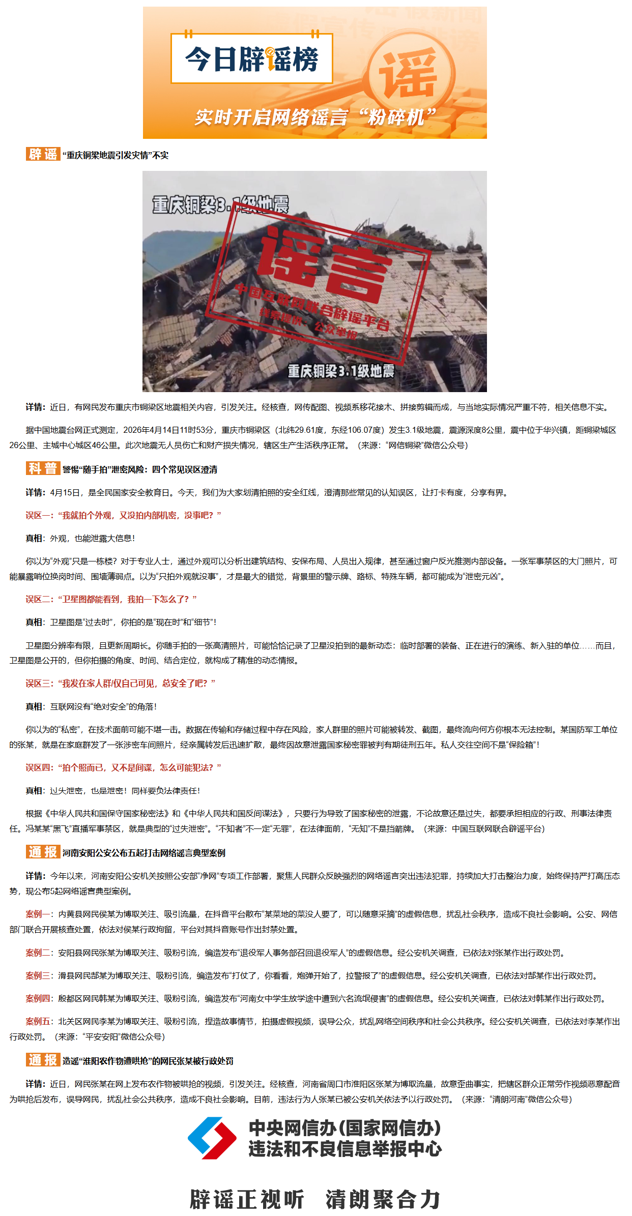 “重庆铜梁地震引发灾情”不实(2026·04·15)